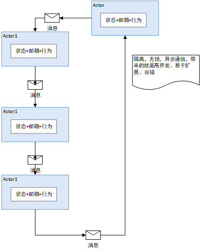 Actor 模型是一种用于处理高并发计算的编程模型。它的核心思想是:万物皆 Actor,每个 Actor 之间通过异步消息进行通信,每个 Actor 独立处理自己的状态,没有共享内存。