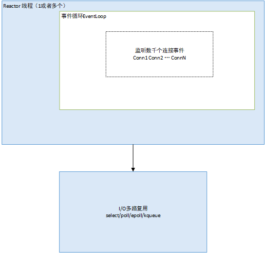 所有操作都在一个线程内完成,包括I/O和业务处理。