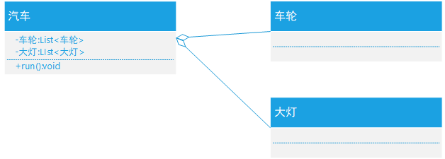 是整体与个体的关系(has-a),且个体可以离开整体而单独存在。如车和轮胎是整体和部分的关系,轮胎离开车仍然可以存在。聚合是关联关系的一种,是强的关联关系;关联和聚合在语义无法区分,必须考察具体的逻辑关系